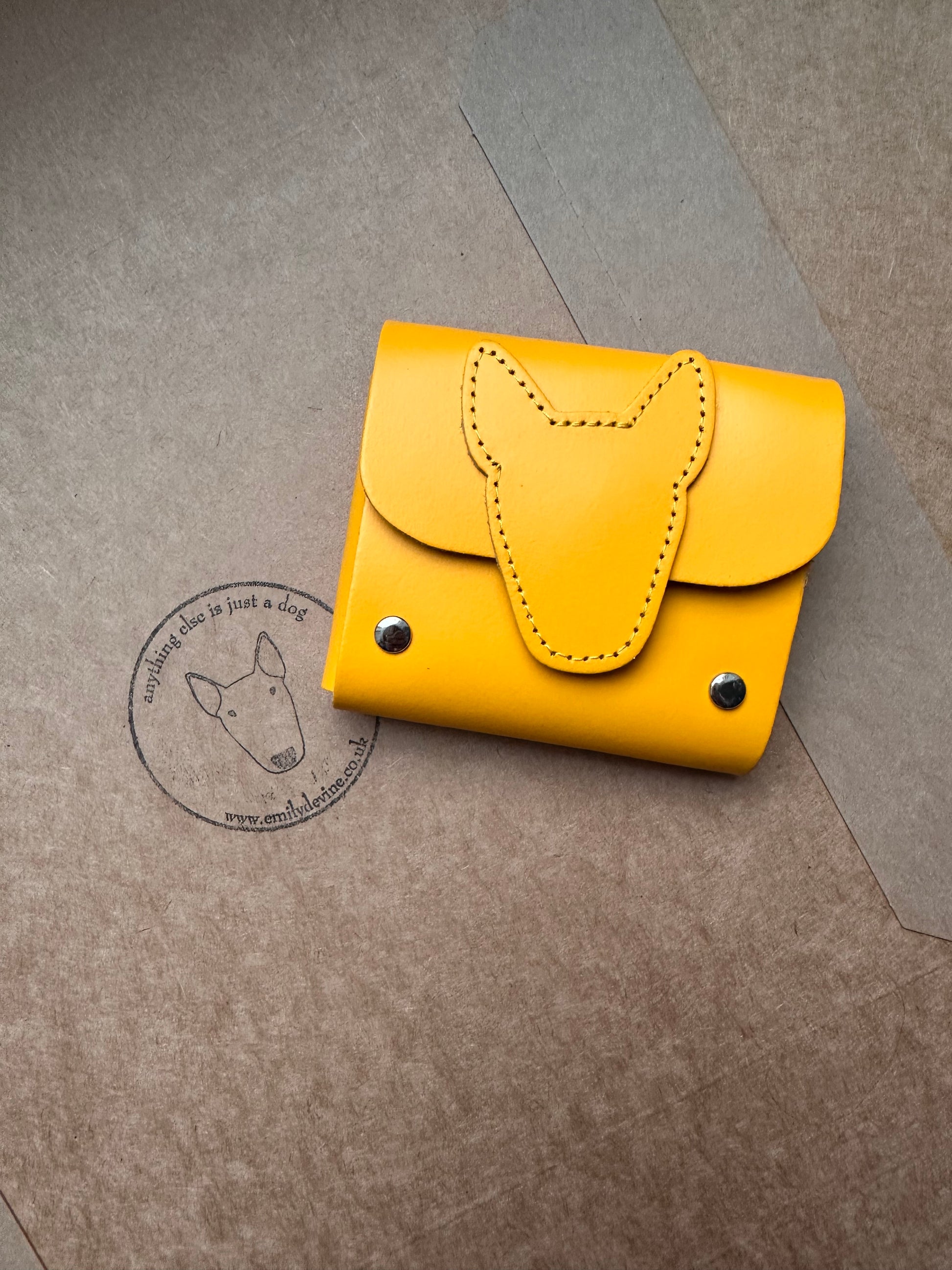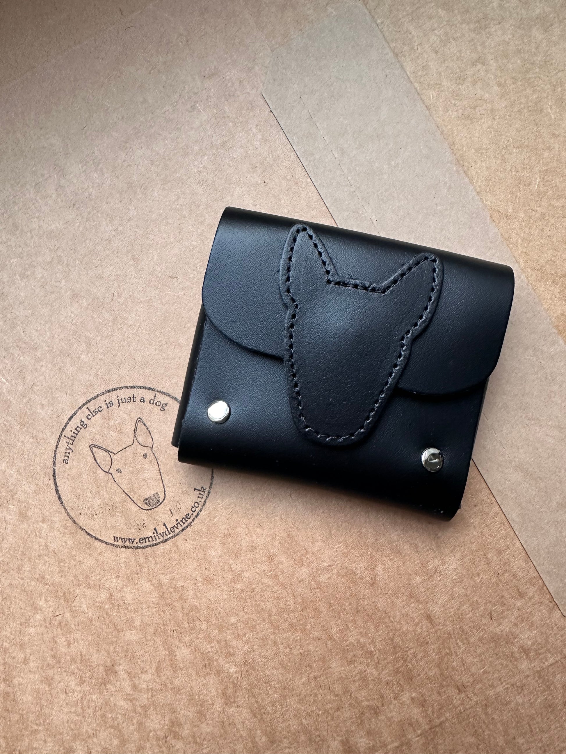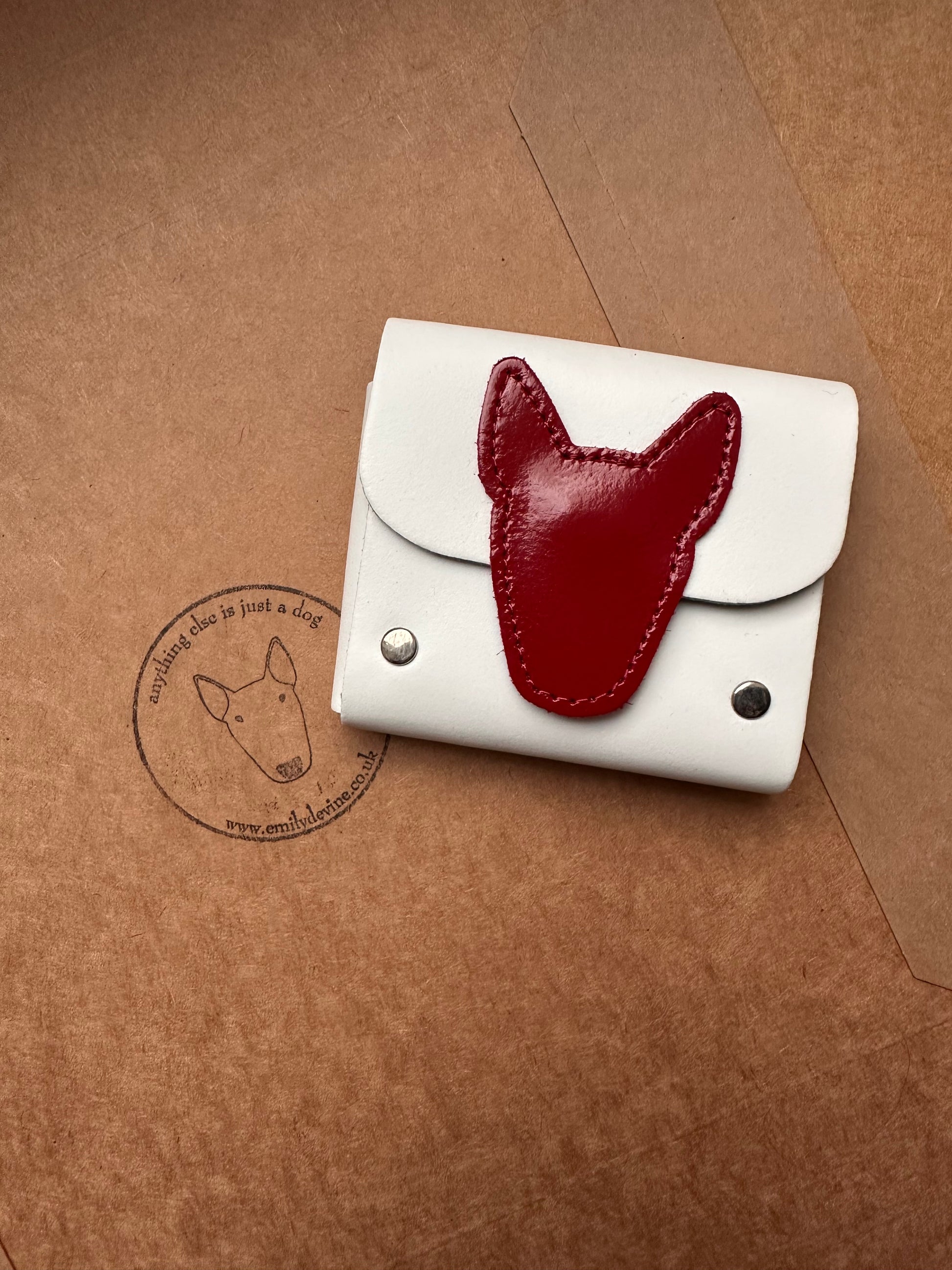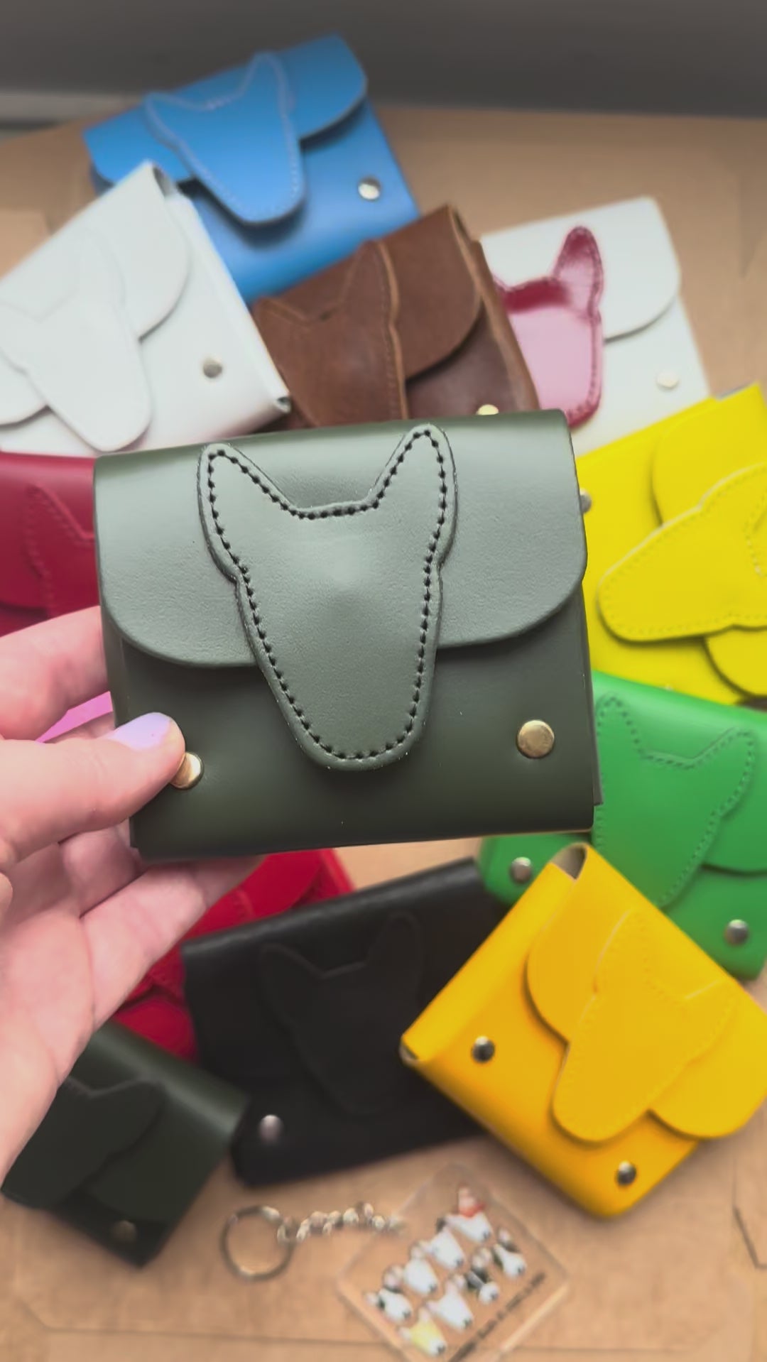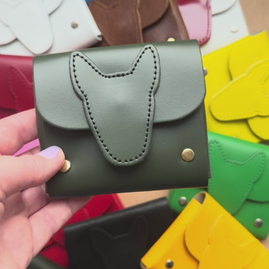 The Kasper Koin purse is a made to order item so you can decide on the colour of leather (please see the colour wheel in the photos and name your choice when you place your order. You can also choose to have a contrasting leather for the bull terrier head.