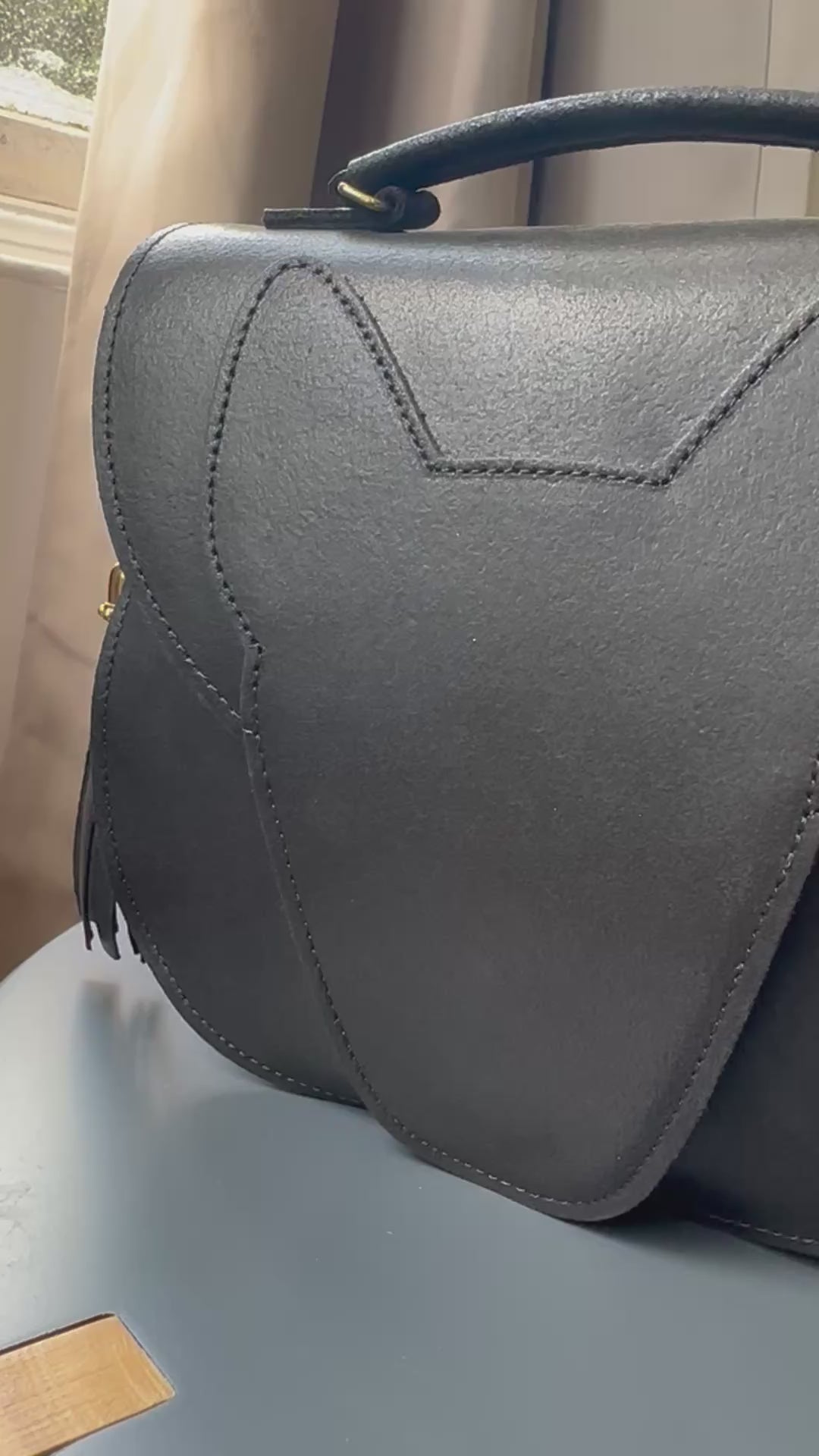 This timeless and effortlessly stylish saddle bag is handmade in England from the best quality leather. The classic bull terrier head shape hides a magnetic closure and the cute handle makes it a perfect bag to complement your favourite look.