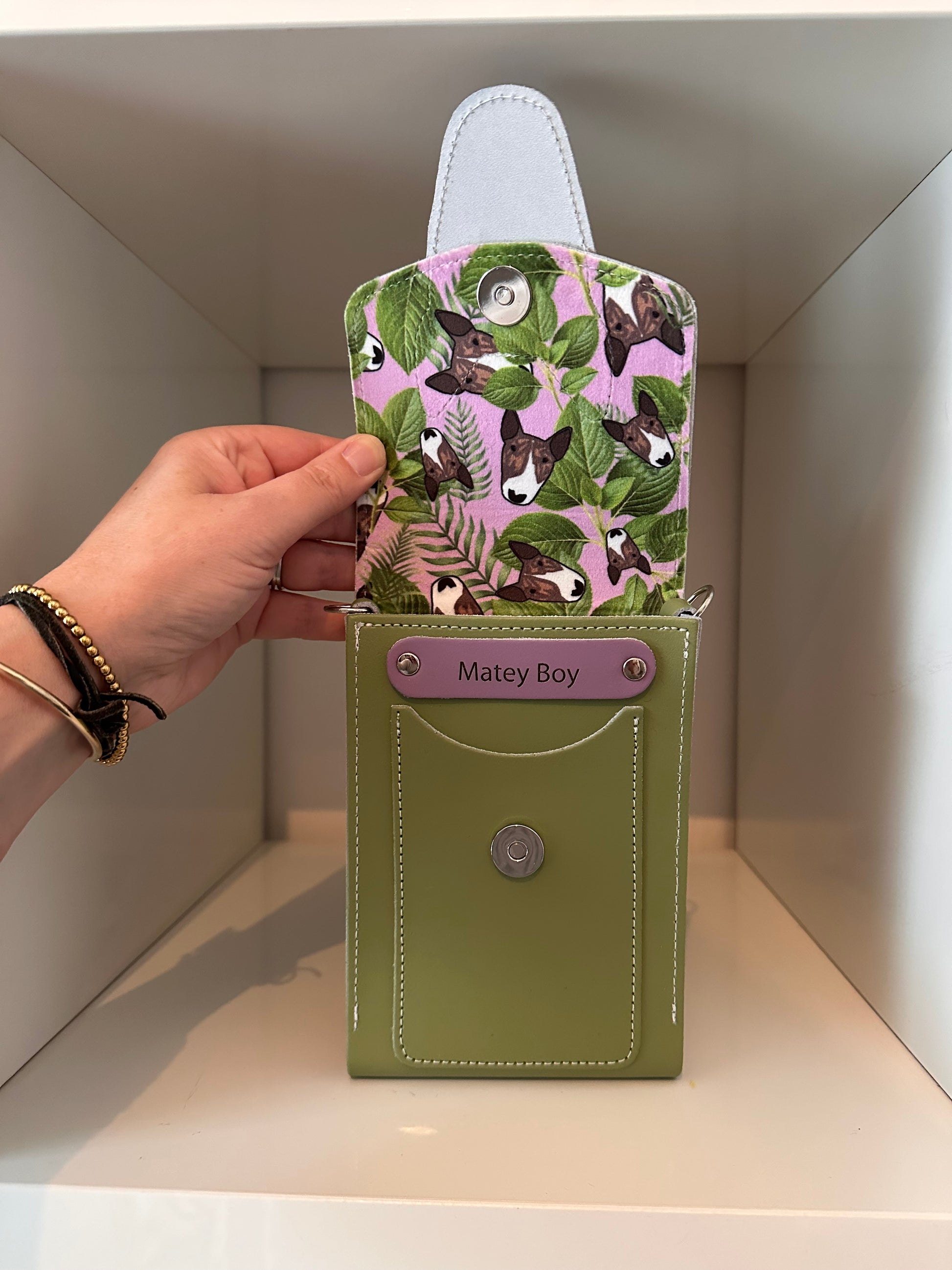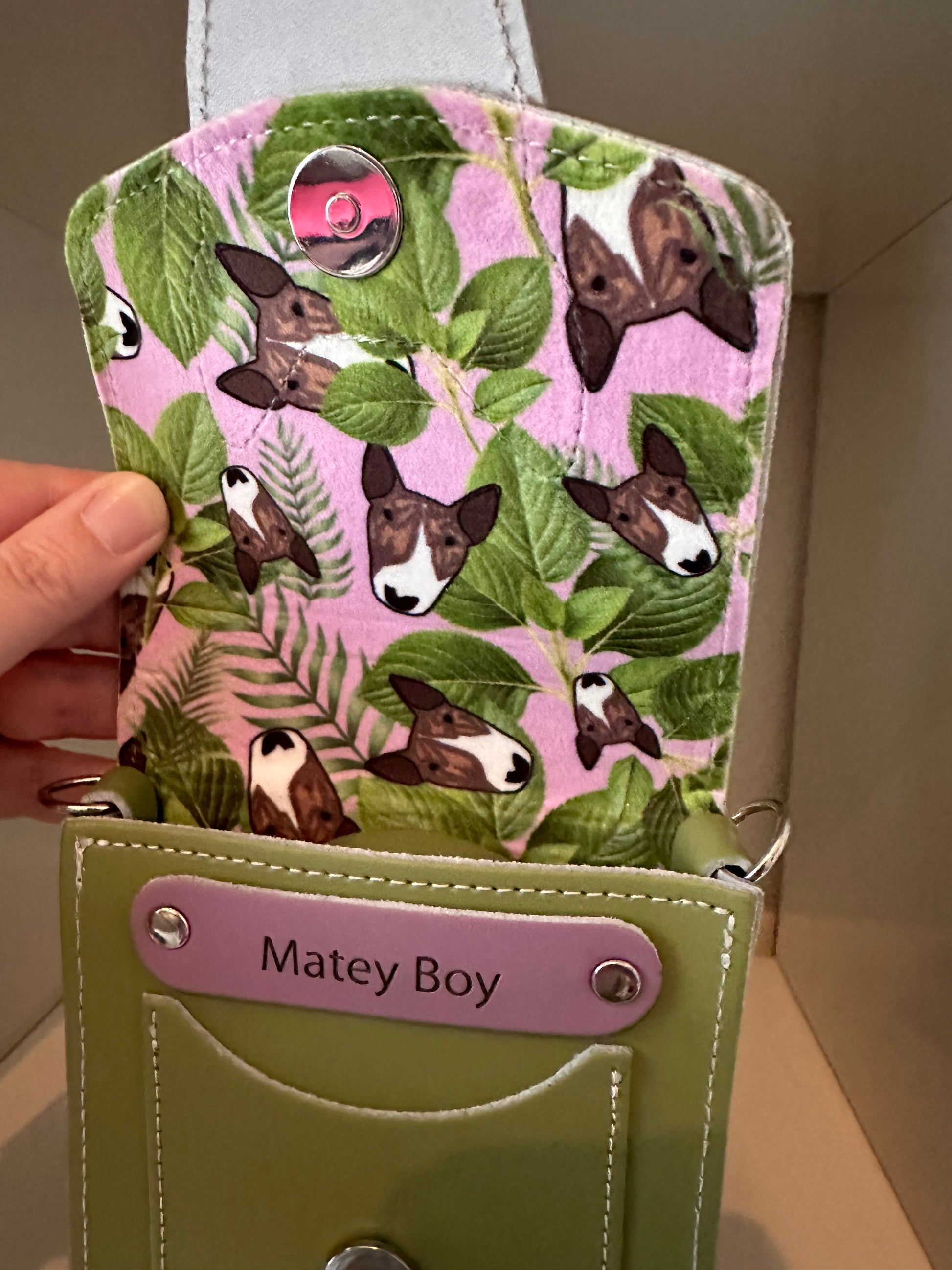 This bag also comes with a custom velvet lining. You can select one of my existing designs or I can work with you to design something completely unique featuring your own dog. Have a look at my Spoonflower store for the designs (https://www.spoonflower.com/profiles/emilydevineart)