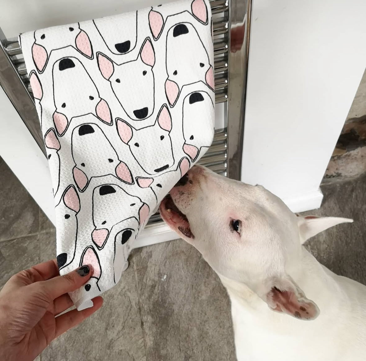 Brighten up any kitchen with a bull terrier print kitchen towel!
